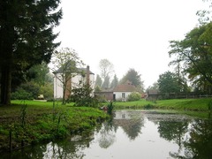 Het landhuis en resterende arm van de gracht rond de voormalige eilandtuin, aangelegd als landschappelijke vijver in de jaren 1860.