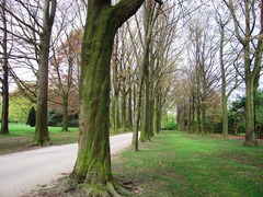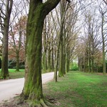 De oprijlaan van het kasteel van Bever met vier rijen bruine beuken.