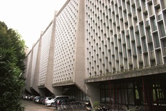Het herbariumgebouw, een elegante laatmodernistische constructie uit 1959-1962.