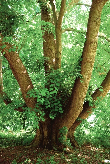 Een monumentale, laagvertakte wingerdbladige zomerlinde - vermoedelijk een 'bundelboom'.
