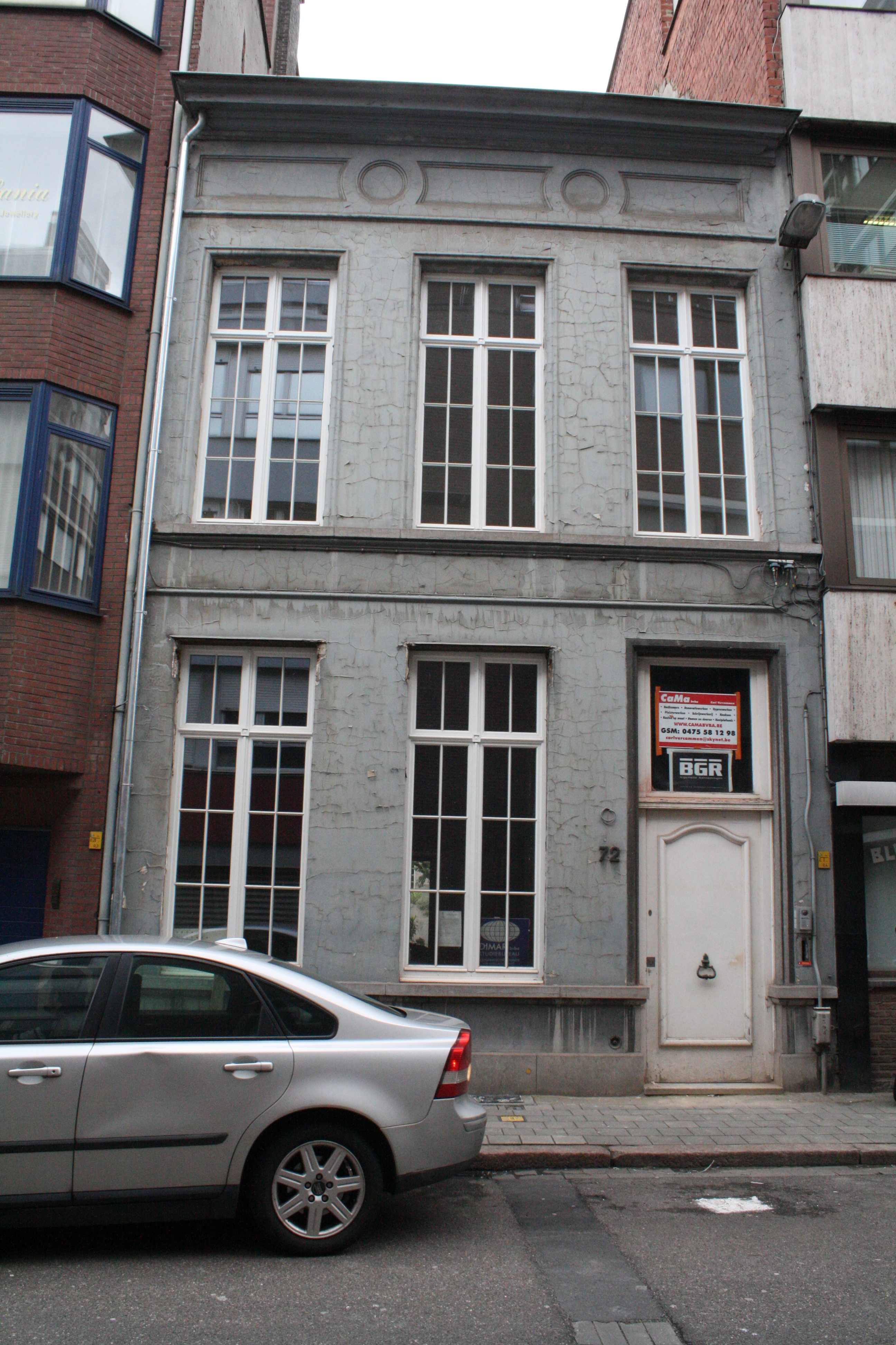 De afbeelding 'Neoclassicistische stadswoning van 1852' gemaakt door Horemans, Charlotte wordt ter beschikking gesteld door Agentschap Onroerend Erfgoed (AOE) onder de volgende voorwaarden: Modellicentie voor gratis hergebruik, Naamsvermelding-GelijkDelen 4.0 Internationaal.