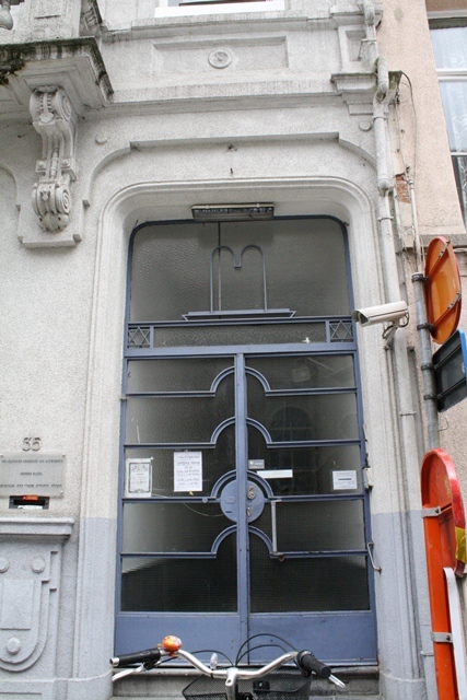 De afbeelding 'Burgerhuis met achterliggende synagoge' gemaakt door Horemans, Charlotte wordt ter beschikking gesteld door Agentschap Onroerend Erfgoed (AOE) onder de volgende voorwaarden: Modellicentie voor gratis hergebruik, Naamsvermelding-GelijkDelen 4.0 Internationaal.