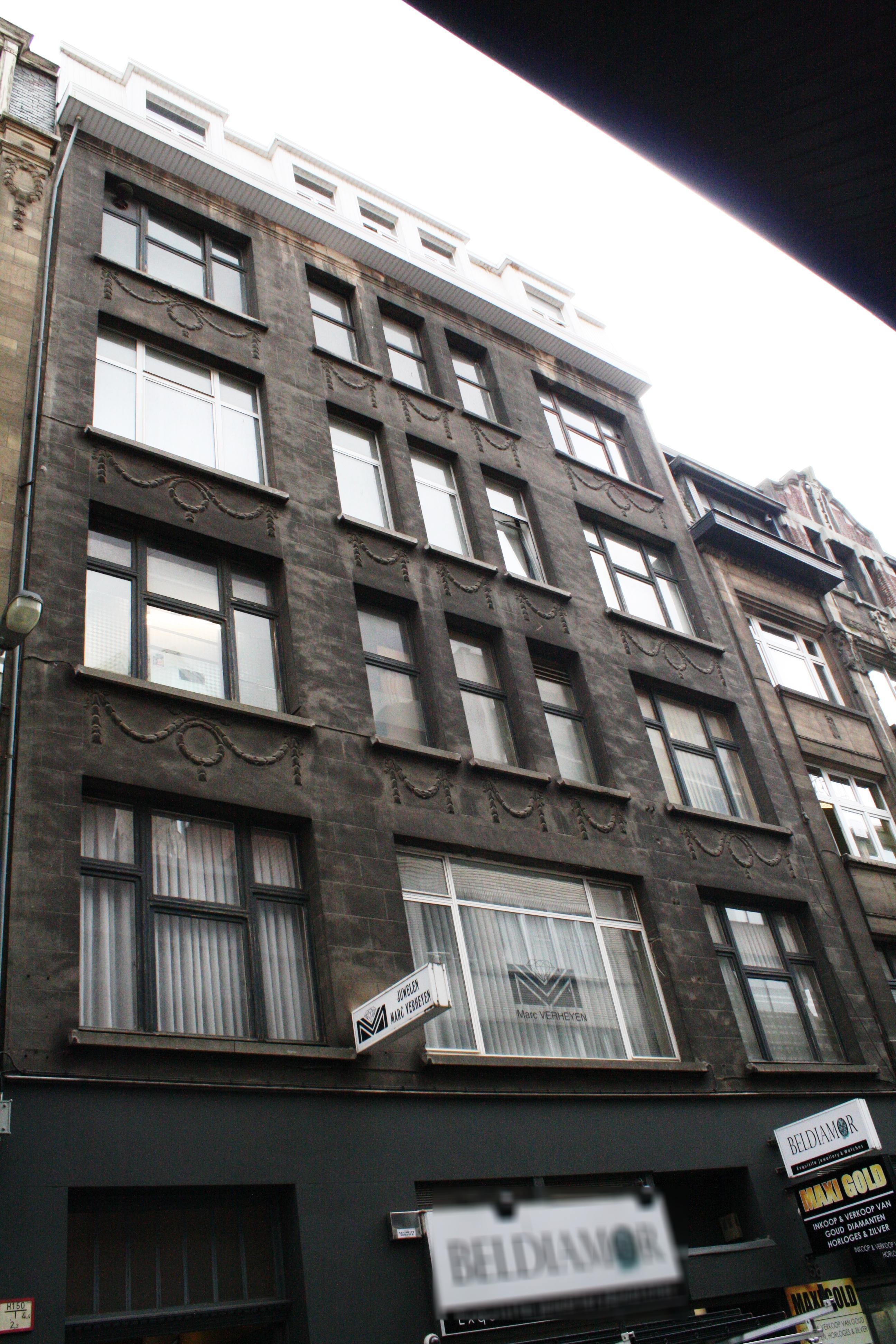 De afbeelding 'Appartementsgebouw met winkel, diamantslijperij en ateliers' gemaakt door Horemans, Charlotte wordt ter beschikking gesteld door Agentschap Onroerend Erfgoed (AOE) onder de volgende voorwaarden: Modellicentie voor gratis hergebruik, Naamsvermelding-GelijkDelen 4.0 Internationaal.