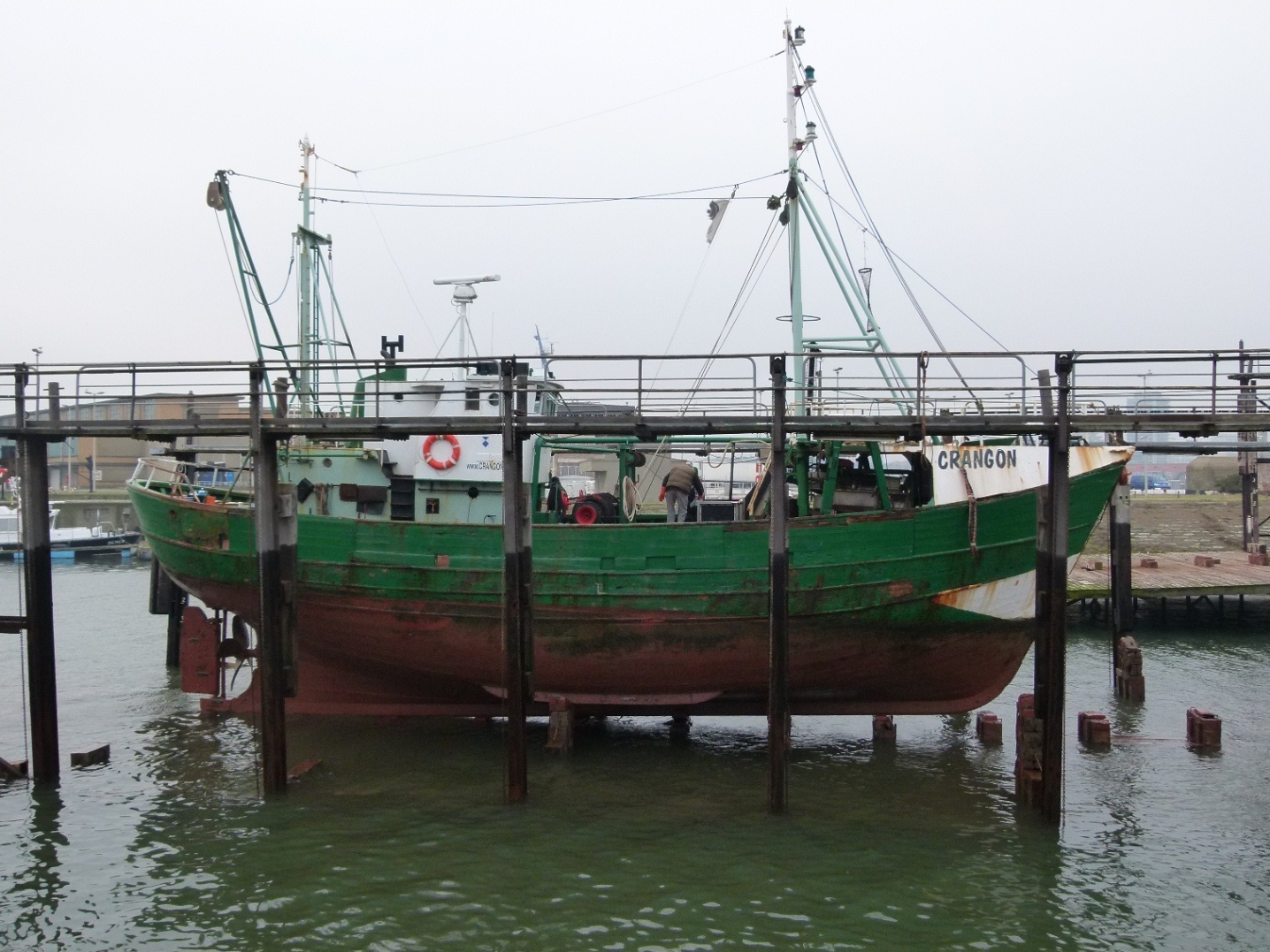 De afbeelding 'De Crangon op de beschermde Crandall slipway in Oostende' gemaakt door Van Dijck, Maarten wordt ter beschikking gesteld door Agentschap Onroerend Erfgoed (AOE) onder de volgende voorwaarden: Modellicentie voor gratis hergebruik, Naamsvermelding 4.0 Internationaal.