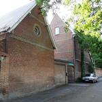 Het Papenhofke, straatkant, vooraan het gedeelte waarin het wijkhuis van Wijkraad Nekkerspoel huist; achteraan het gedeelte waarin de conciërge huist.