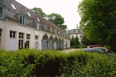 Het koetshuis en de noordgevel van het kasteel van Wilder.