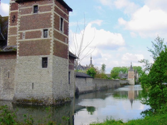 De afbeelding 'De ringgracht en de hoektoren' gemaakt door Deneef, Roger wordt ter beschikking gesteld door Agentschap Onroerend Erfgoed (AOE) onder de volgende voorwaarden: Modellicentie voor gratis hergebruik, Naamsvermelding 4.0 Internationaal.