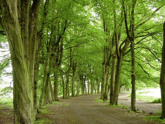De haagbeukenlaan, één van de weinige architectonische elementen in het kasteelpark van Perk.