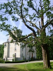 Het verbouwde kasteel van Huinhoven met op de voorgrond een monumentale Spaanse aak