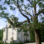 Het verbouwde kasteel van Huinhoven met op de voorgrond een monumentale Spaanse aak.