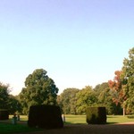 Sporen van geometrische aanleg achter het kasteel, tegen de achtergrond van het landschappelijk park.