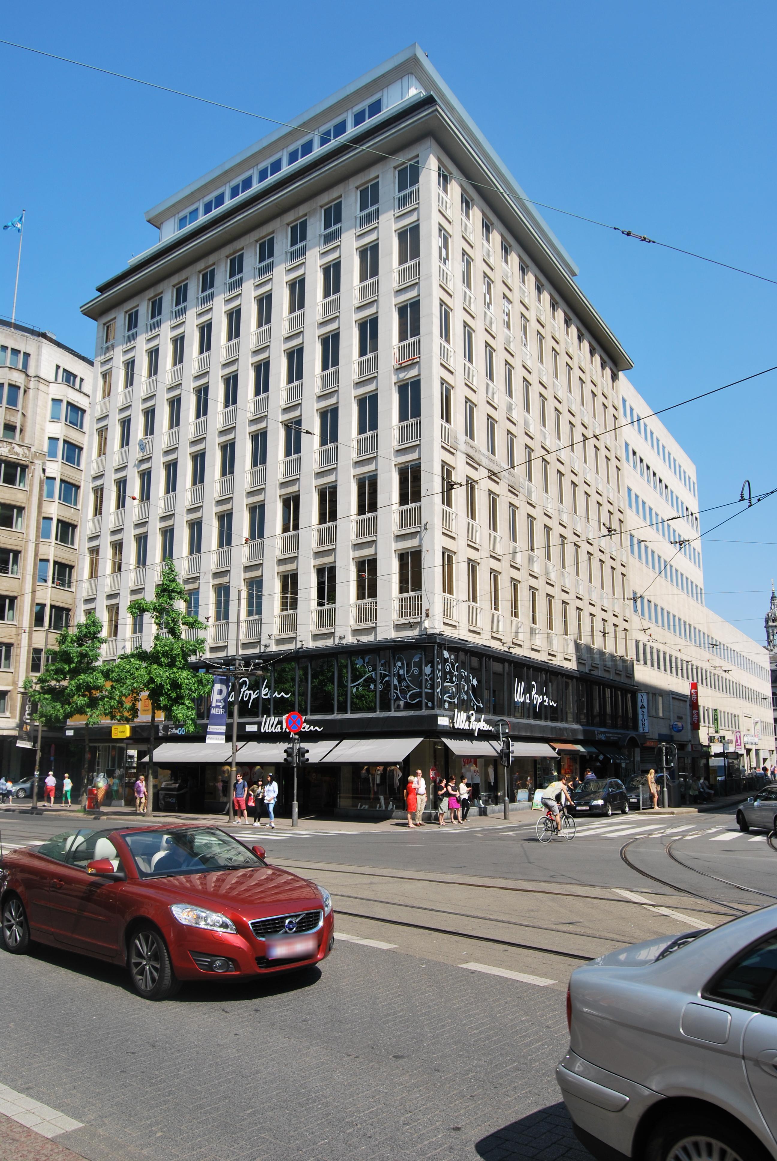 De afbeelding 'Meir Center Building' wordt ter beschikking gesteld door Agentschap Onroerend Erfgoed (AOE) onder de volgende voorwaarden: Modellicentie voor gratis hergebruik, Naamsvermelding 4.0 Internationaal.