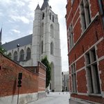 Zicht vanuit de Ziekeliedenstraat naar de Onze-Lieve-Vrouw-over-Dijlekerk in de Gebroeders Verhaeghenstraat.