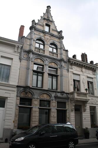 De afbeelding 'Ensemble van burgerhuizen in eclectische stijl' gemaakt door Hooft, Elise wordt ter beschikking gesteld door Agentschap Onroerend Erfgoed (AOE) onder de volgende voorwaarden: Modellicentie voor gratis hergebruik, Naamsvermelding 4.0 Internationaal.