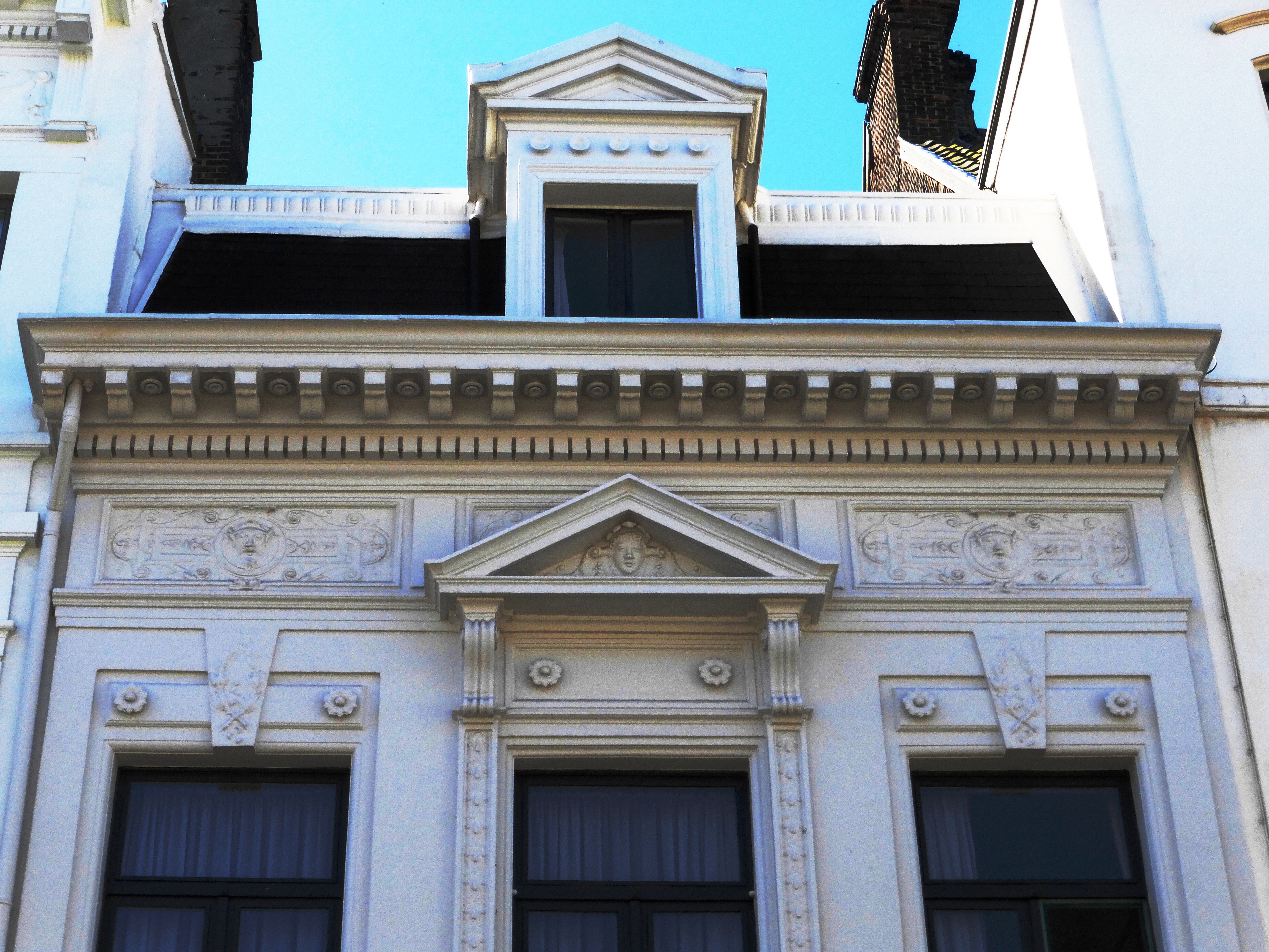 De afbeelding 'Neoclassicistisch burgerhuis' gemaakt door Hooft, Elise wordt ter beschikking gesteld door Agentschap Onroerend Erfgoed (AOE) onder de volgende voorwaarden: Modellicentie voor gratis hergebruik, Naamsvermelding 4.0 Internationaal.