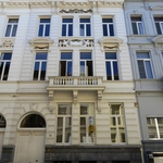 De afbeelding 'Ensemble van vier statige neoclassicistische huizen' gemaakt door Hooft, Elise wordt ter beschikking gesteld door Agentschap Onroerend Erfgoed (AOE) onder de volgende voorwaarden: Modellicentie voor gratis hergebruik, Naamsvermelding 4.0 Internationaal.