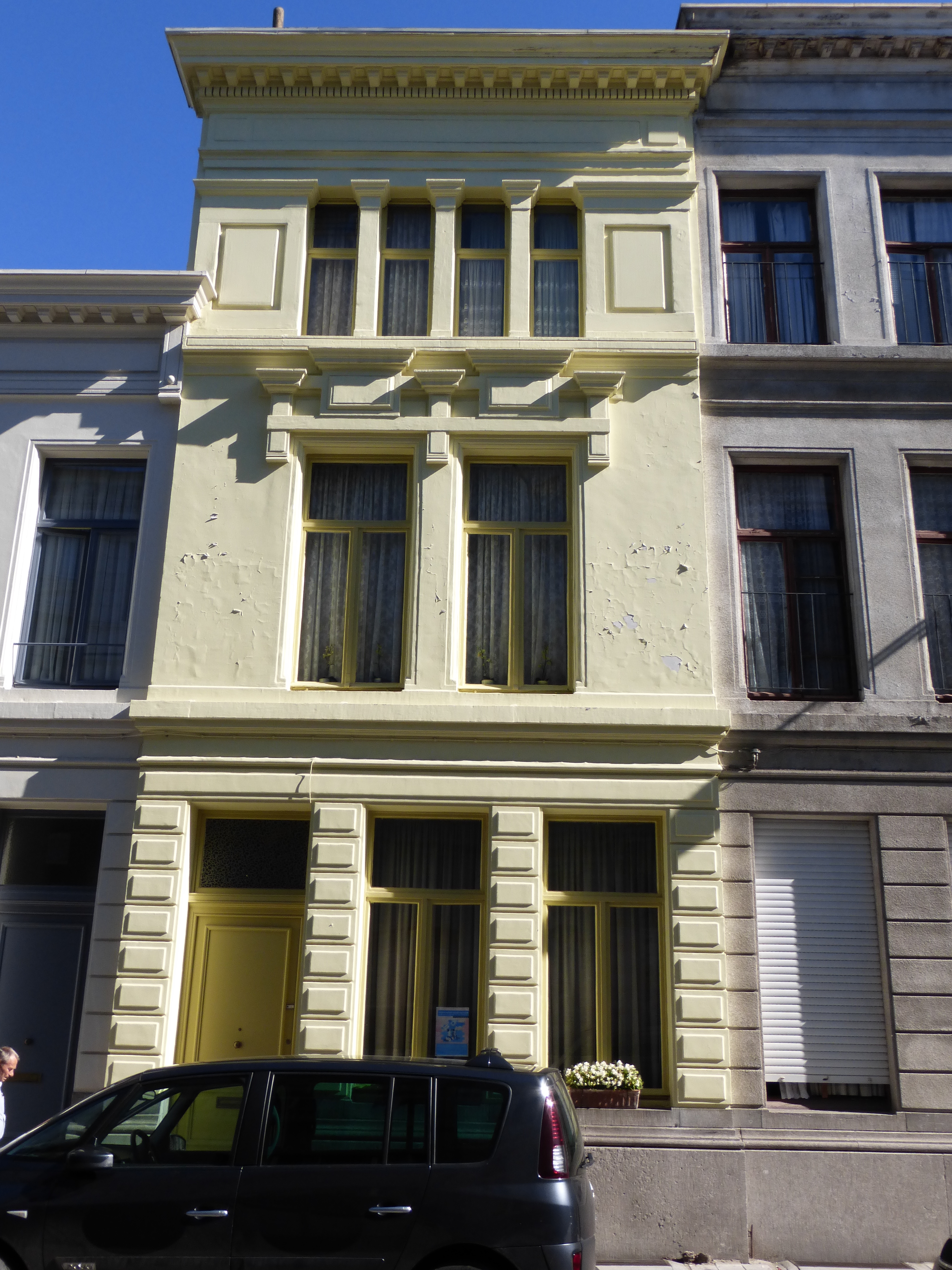 De afbeelding 'Neoclassicistische huizenrij' gemaakt door Hooft, Elise wordt ter beschikking gesteld door Agentschap Onroerend Erfgoed (AOE) onder de volgende voorwaarden: Modellicentie voor gratis hergebruik, Naamsvermelding 4.0 Internationaal.