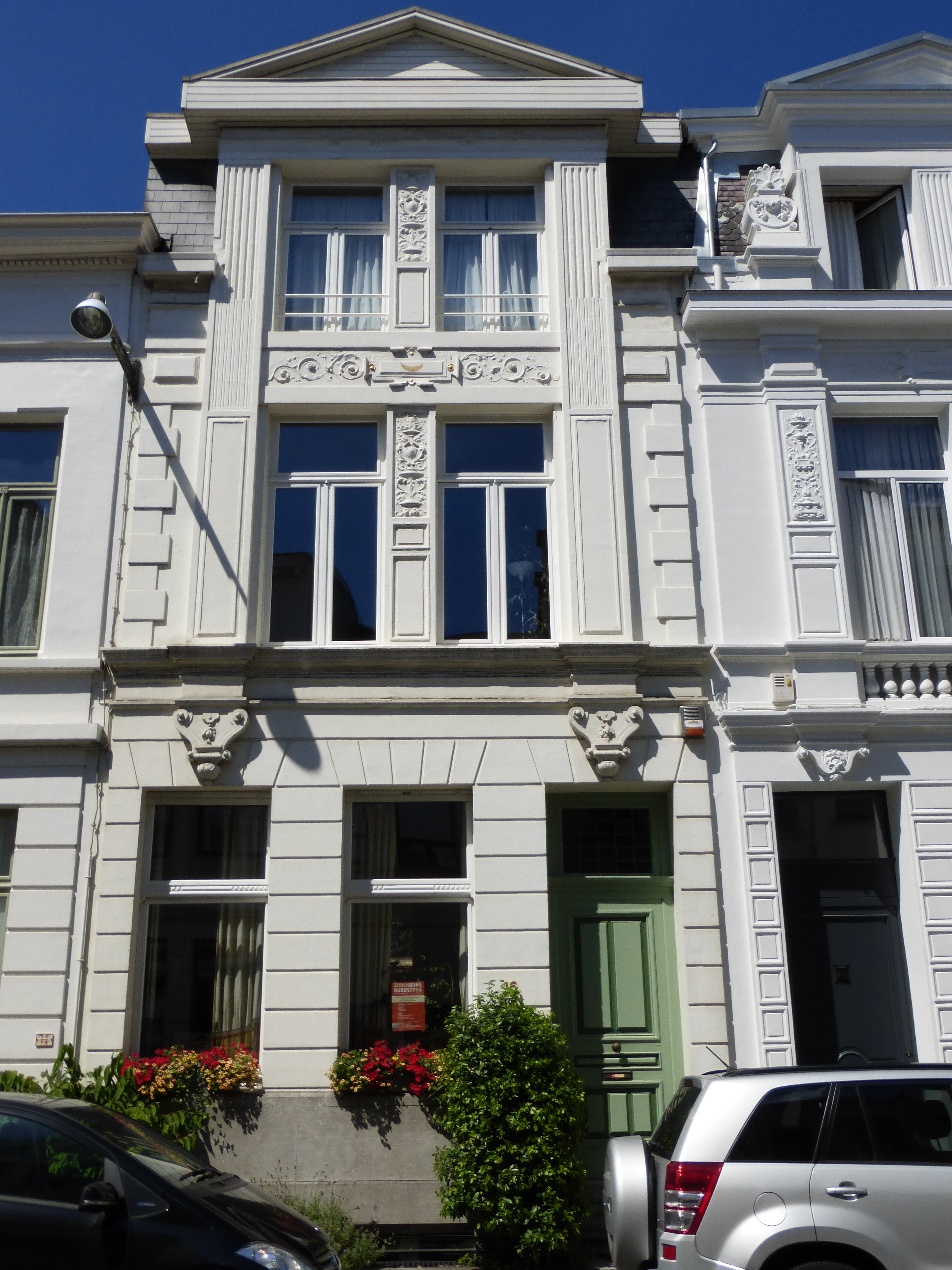 De afbeelding 'Neoclassicistische stadswoningen' gemaakt door Hooft, Elise wordt ter beschikking gesteld door Agentschap Onroerend Erfgoed (AOE) onder de volgende voorwaarden: Modellicentie voor gratis hergebruik, Naamsvermelding 4.0 Internationaal.
