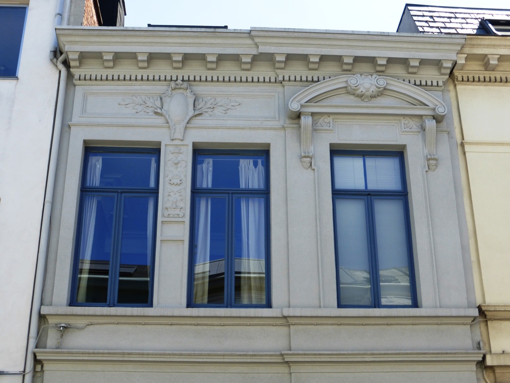 De afbeelding 'Neoclassicistisch hoekensemble' gemaakt door Hooft, Elise wordt ter beschikking gesteld door Agentschap Onroerend Erfgoed (AOE) onder de volgende voorwaarden: Modellicentie voor gratis hergebruik, Naamsvermelding 4.0 Internationaal.