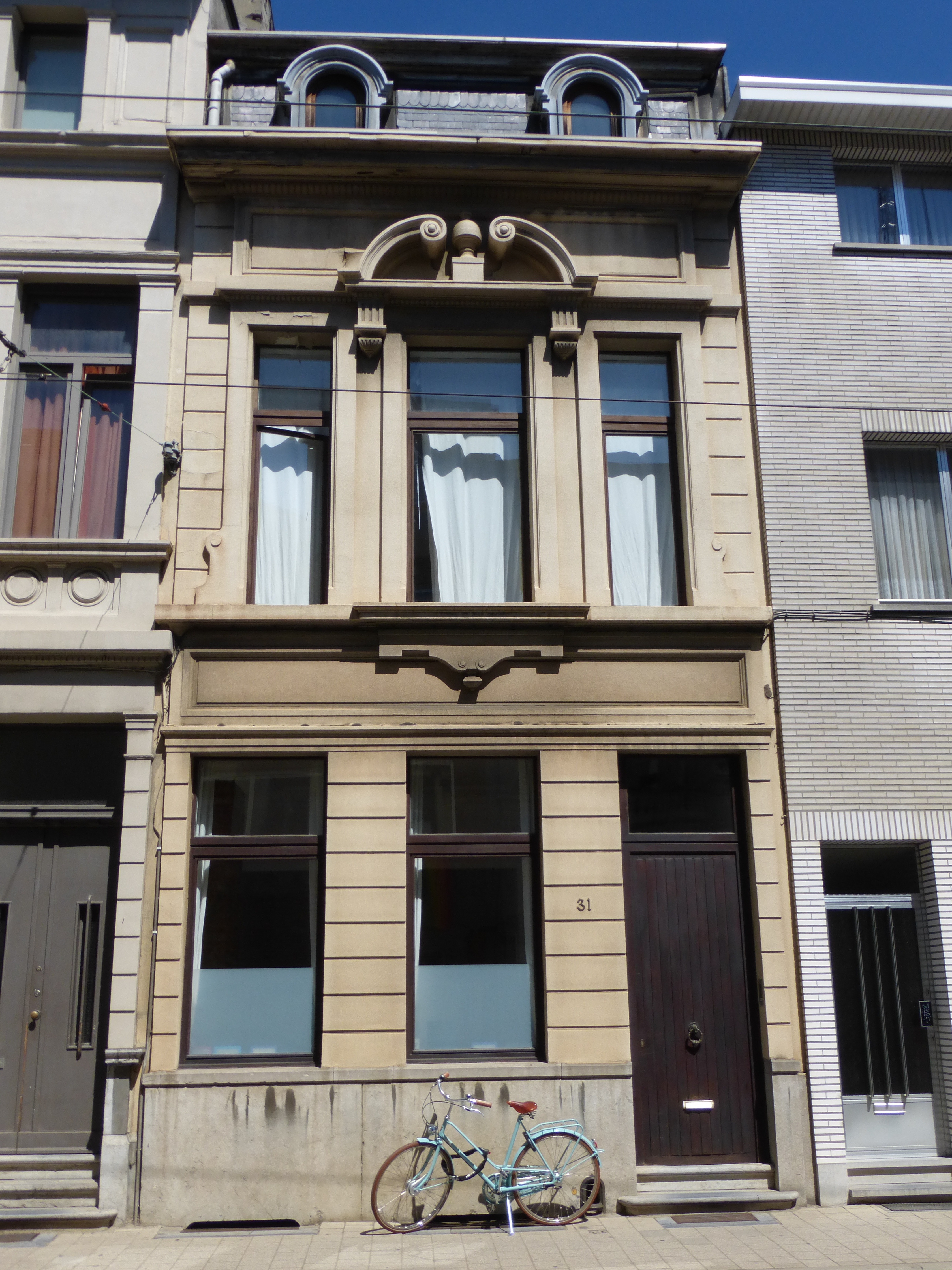 De afbeelding 'Drie woningen uit een eclectisch ensemble' gemaakt door Hooft, Elise wordt ter beschikking gesteld door Agentschap Onroerend Erfgoed (AOE) onder de volgende voorwaarden: Modellicentie voor gratis hergebruik, Naamsvermelding 4.0 Internationaal.