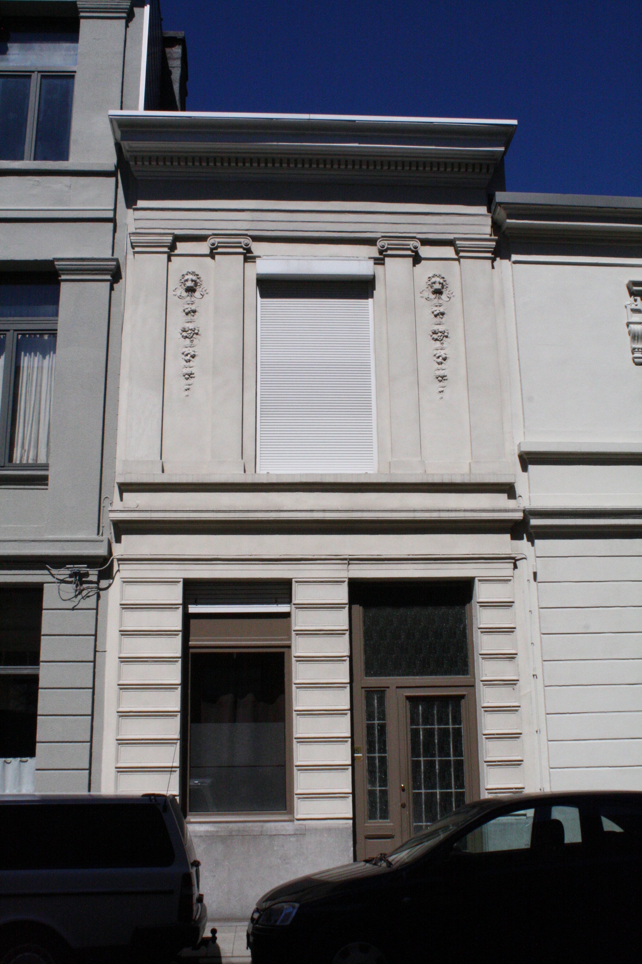 De afbeelding 'Ensemble van zeven neoclassicistische woningen' gemaakt door Hooft, Elise wordt ter beschikking gesteld door Agentschap Onroerend Erfgoed (AOE) onder de volgende voorwaarden: Modellicentie voor gratis hergebruik, Naamsvermelding 4.0 Internationaal.