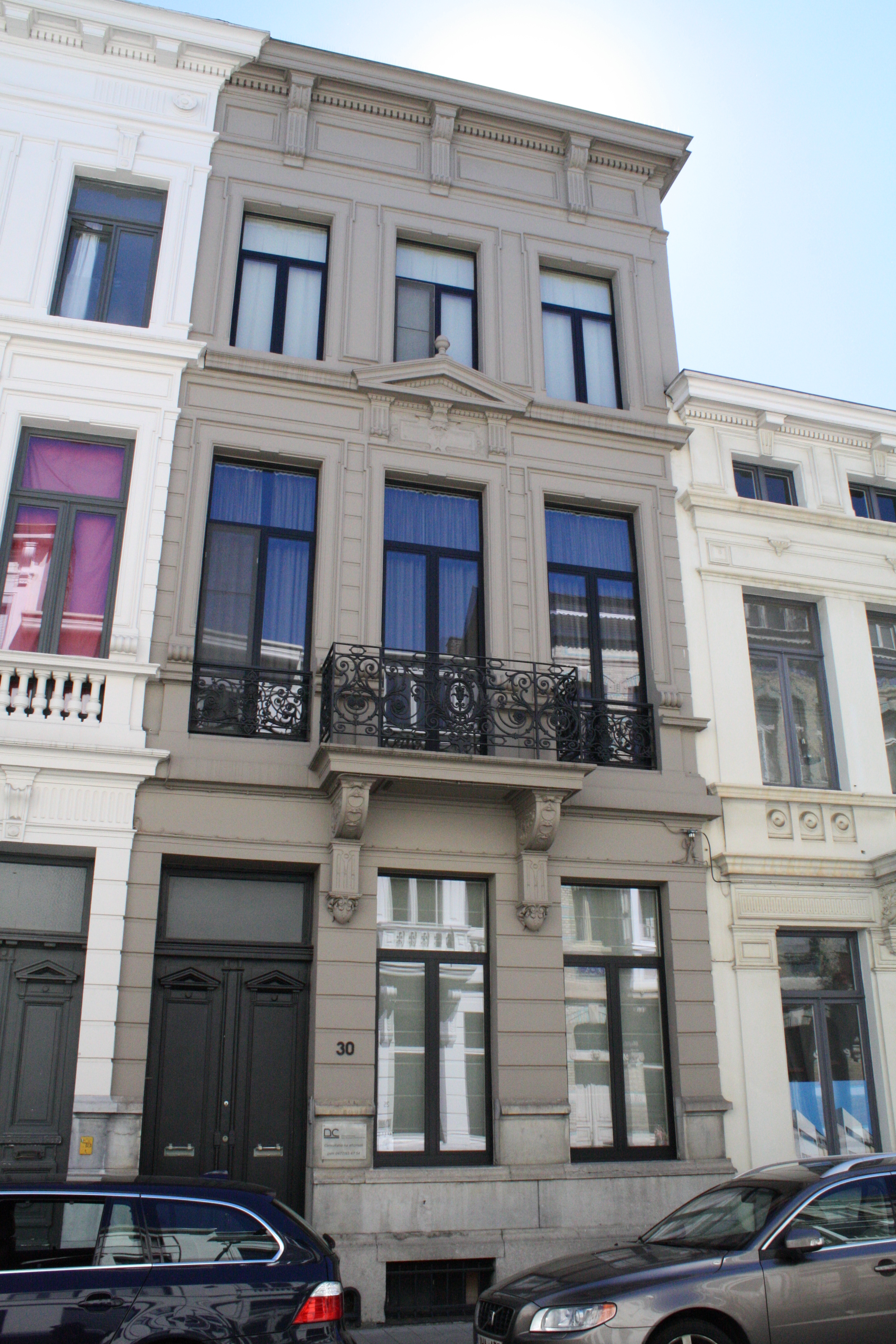 De afbeelding 'Ensemble van elf neoclassicistische burgerhuizen' gemaakt door Hooft, Elise wordt ter beschikking gesteld door Agentschap Onroerend Erfgoed (AOE) onder de volgende voorwaarden: Modellicentie voor gratis hergebruik, Naamsvermelding 4.0 Internationaal.
