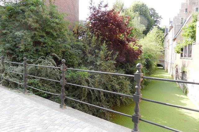 Het âGroen Waterkenâ vormt de grens tussen de Goswin de Stassartstraat (rechts in beeld) en de Wollemarkt (links).
