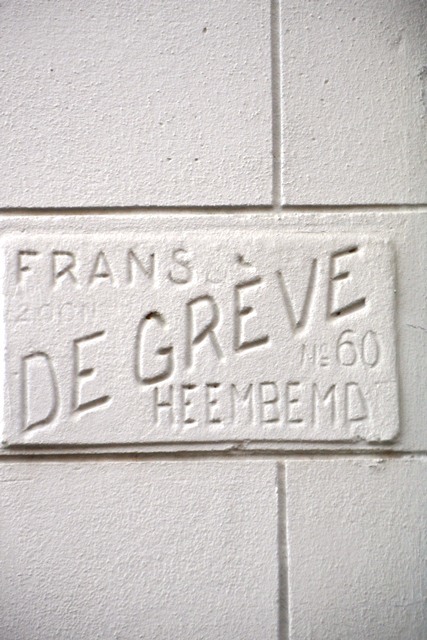 Arbeiderswoning nr. 48 is gesigneerd, "Frans De Grève, nr. 60 Heemdbeemd".