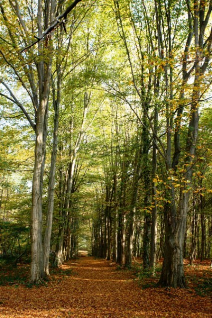 De in 1903 aangelegde, door haagbeuken overschaduwde oprijlaan richting Geetbets.