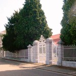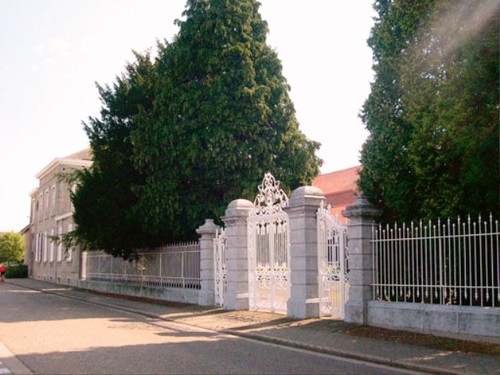 Het monumentale toegangshek en de residentiële vleugel van het kasteel-distilleerderijcomplex van Neerwinden.