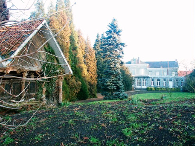 Rustiek schuurtje in de voortuin bij het kasteel van Neerwinden.