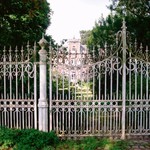Het toegangshek en het kasteel van Den Ast op de achtergrond.