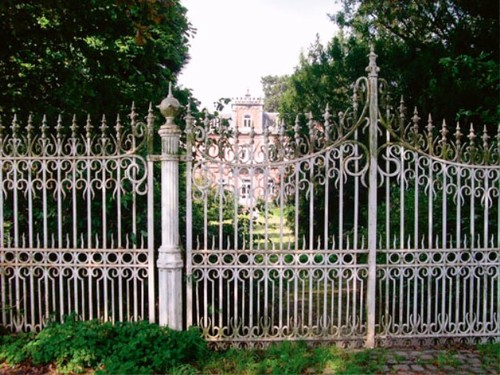 Het toegangshek en het kasteel van Den Ast op de achtergrond.