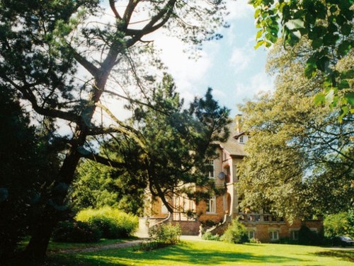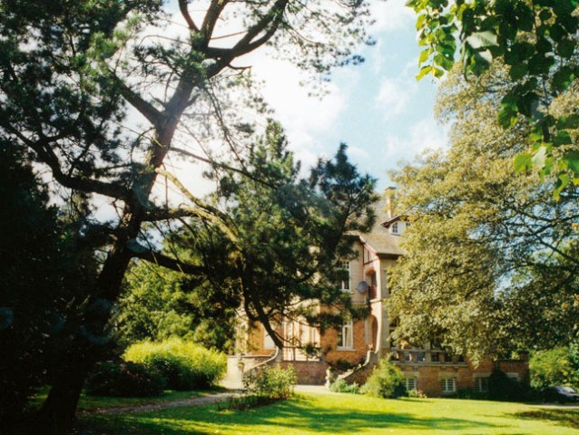 De huidige, rond 1925 gebouwde villa, zomerverblijf van notaris Rosseeuw, op de voorgrond een alpenden.