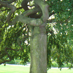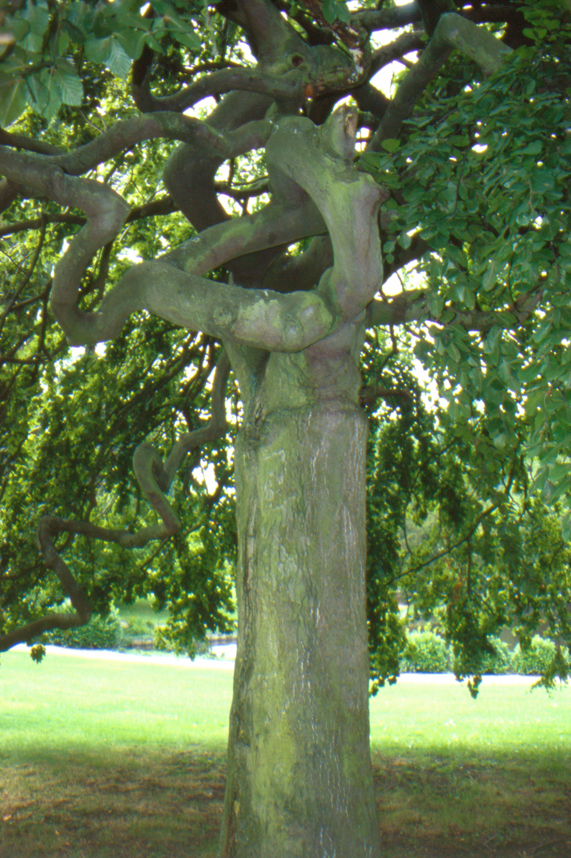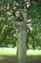 Een beuk met gedraaide takken (Fagus sylvatica 'Tortuosa') op de helling achter de vijver. M&L Cahier 16, p. 245