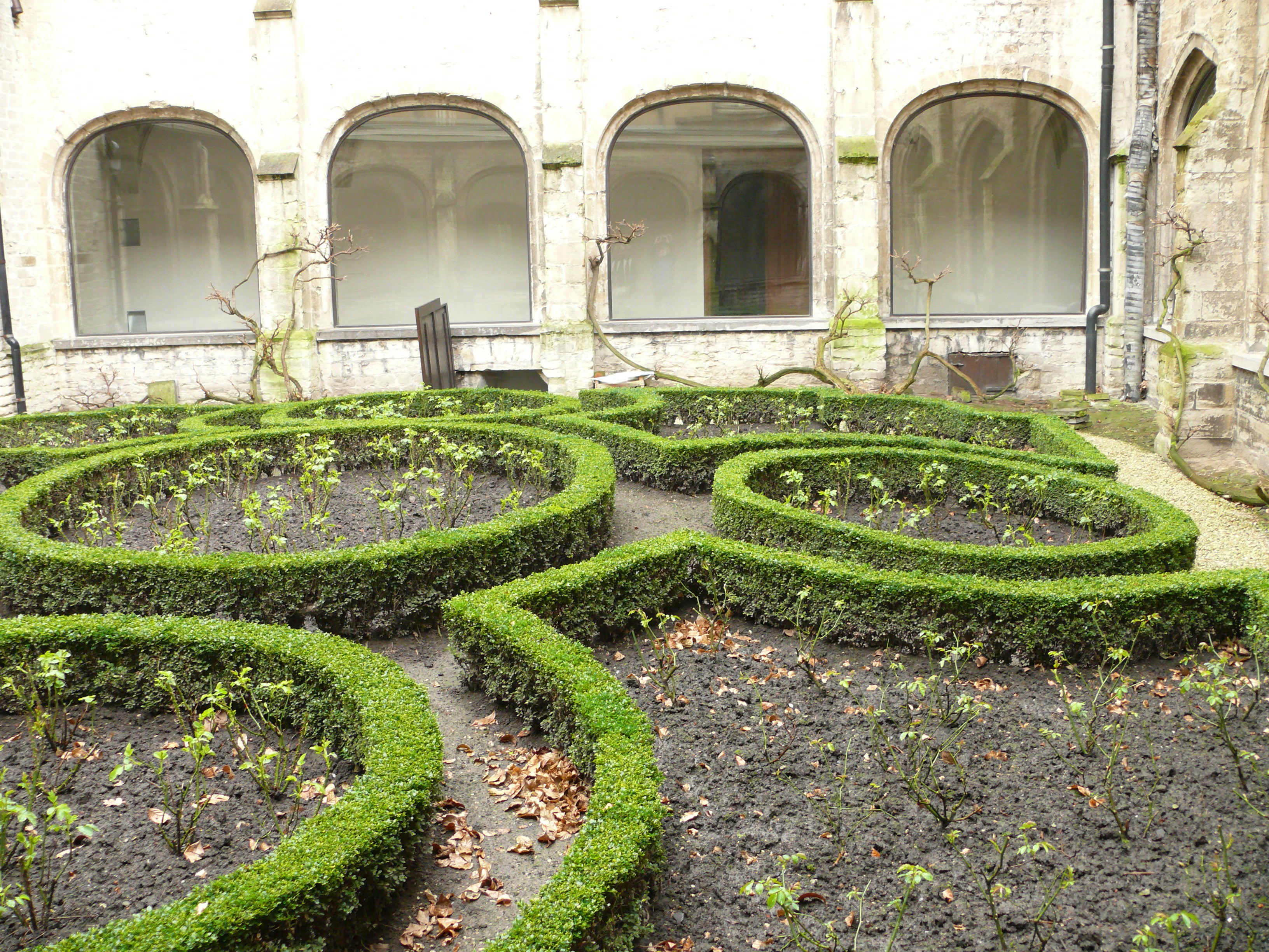 Oudenaarde Sint-Walburgastraat Broderieparterre met randpalmaanplanting