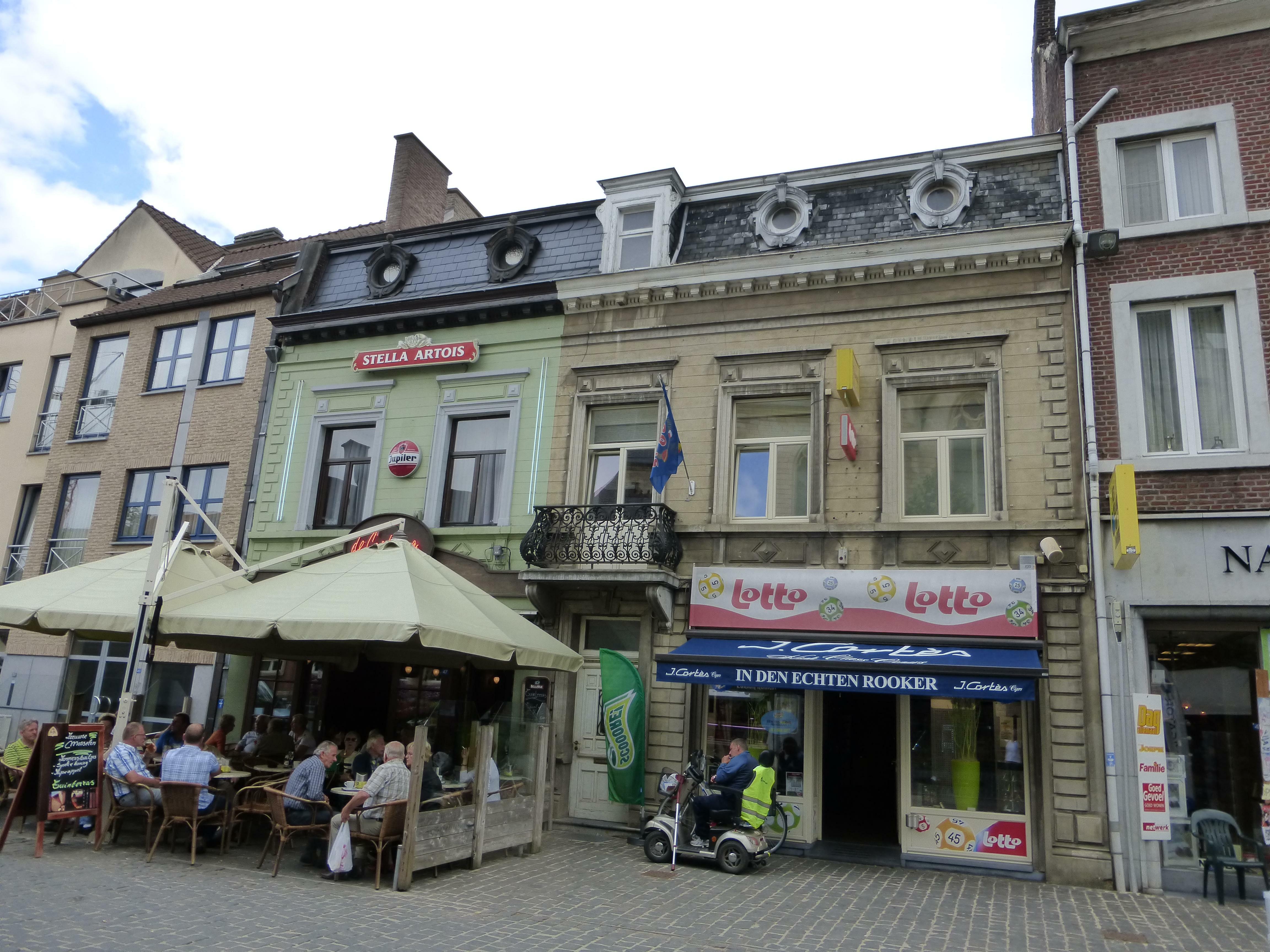 De afbeelding 'Bilzen Markt 45-47' gemaakt door Kennes, Hilde wordt ter beschikking gesteld door Agentschap Onroerend Erfgoed (AOE) onder de volgende voorwaarden: Modellicentie voor gratis hergebruik, Naamsvermelding 4.0 Internationaal.