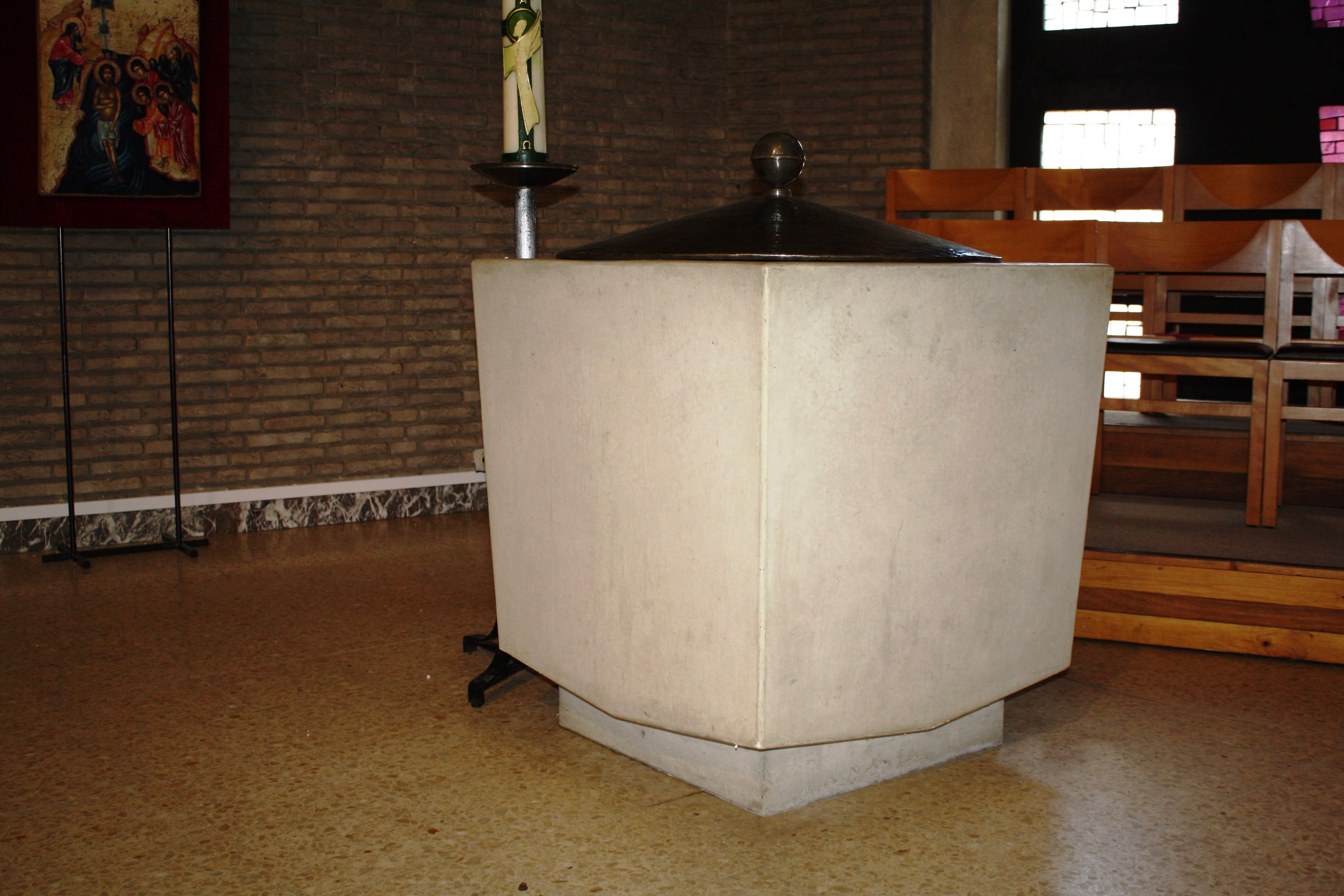 De afbeelding 'Antwerpen Sint-Bernardsesteenweg 721 doopvont' gemaakt door Braeken, Jo wordt ter beschikking gesteld door Agentschap Onroerend Erfgoed (AOE) onder de volgende voorwaarden: Modellicentie voor gratis hergebruik, Naamsvermelding 4.0 Internationaal.
