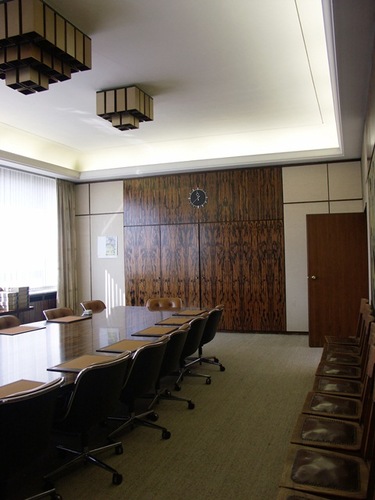 De afbeelding 'Antwerpen Thonetlaan 102 Raadzaal' gemaakt door Plomteux, Greet wordt ter beschikking gesteld door Agentschap Onroerend Erfgoed (AOE) onder de volgende voorwaarden: Modellicentie voor gratis hergebruik, Naamsvermelding 4.0 Internationaal.
