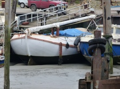 De Nemrod drooggevallen in een getijdenhaven
