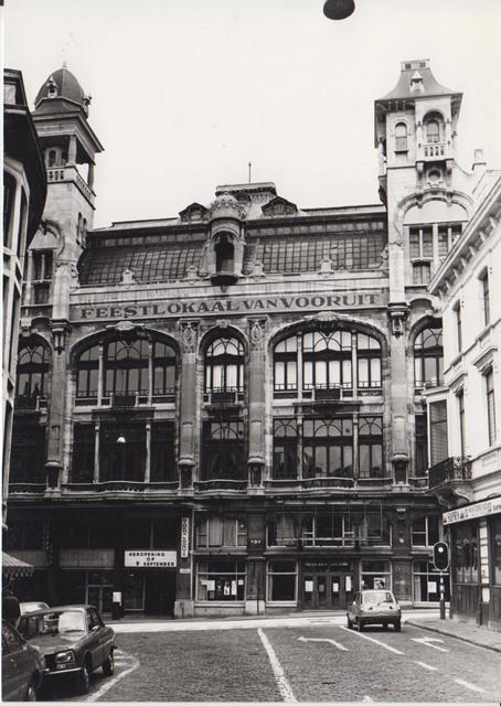 De afbeelding 'Feestlokaal Vooruit' wordt ter beschikking gesteld door Agentschap Onroerend Erfgoed (AOE) onder de volgende voorwaarden: Modellicentie voor gratis hergebruik, Naamsvermelding 4.0 Internationaal.