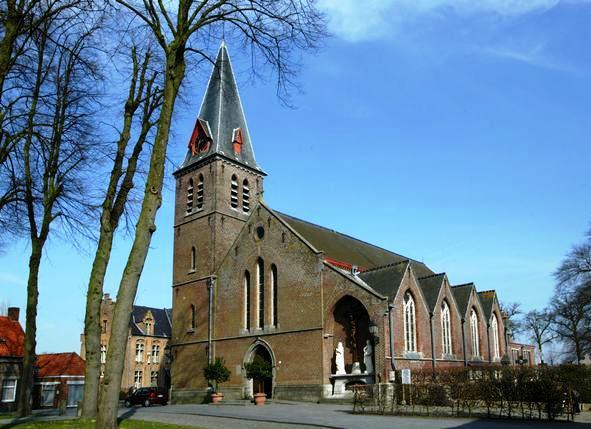 De afbeelding 'Brugge Pastoor Verhaegheplein 13 kerk' gemaakt door Van Vlaenderen, Patricia wordt ter beschikking gesteld door Agentschap Onroerend Erfgoed (AOE) onder de volgende voorwaarden: Modellicentie voor gratis hergebruik, Naamsvermelding 4.0 Internationaal.