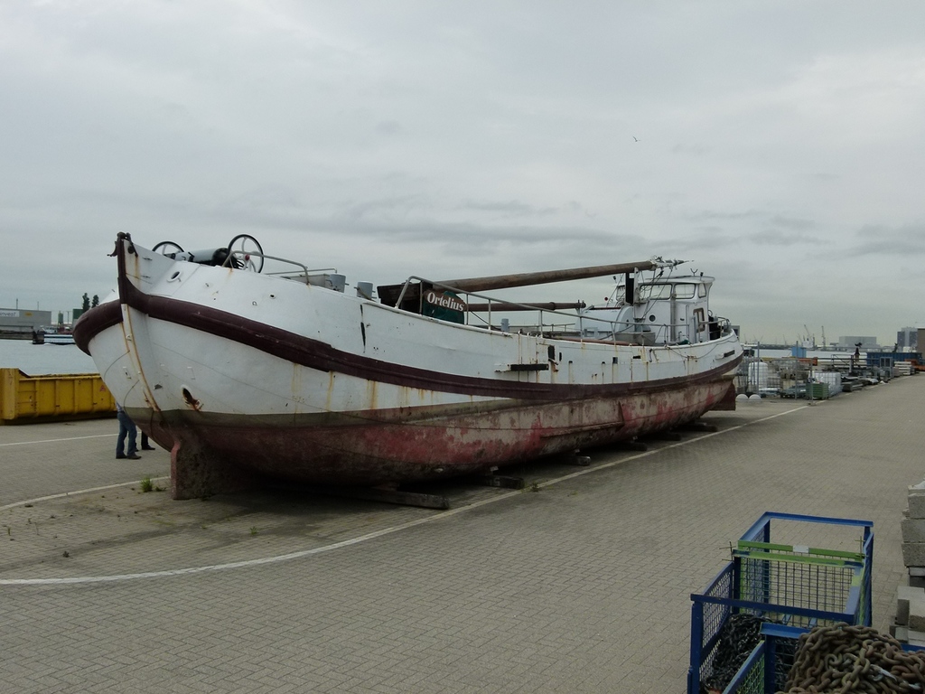 De afbeelding 'De Ortelius op het droge bij het Havenbedrijf' gemaakt door Van Dijck, Maarten wordt ter beschikking gesteld door Agentschap Onroerend Erfgoed (AOE) onder de volgende voorwaarden: Modellicentie voor gratis hergebruik, Naamsvermelding 4.0 Internationaal.