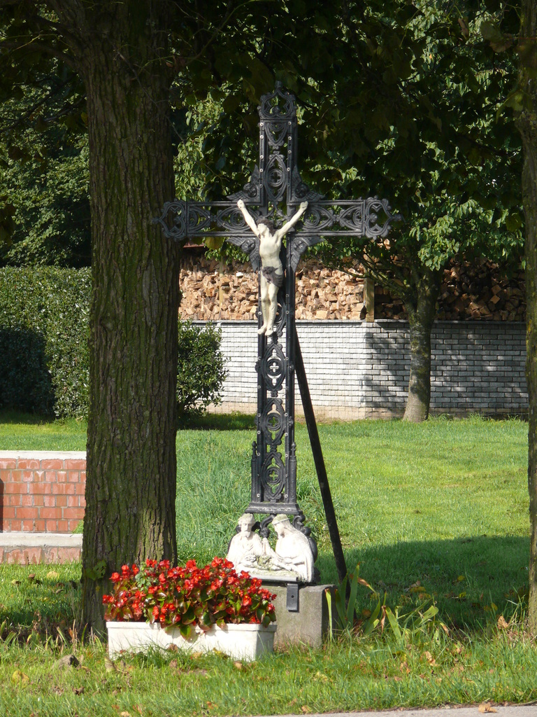 De afbeelding 'Drie lindebomen bij wegkruis' gemaakt door Van der Linden, Geert wordt ter beschikking gesteld door Agentschap Onroerend Erfgoed (AOE) onder de volgende voorwaarden: Modellicentie voor gratis hergebruik, Naamsvermelding 4.0 Internationaal.