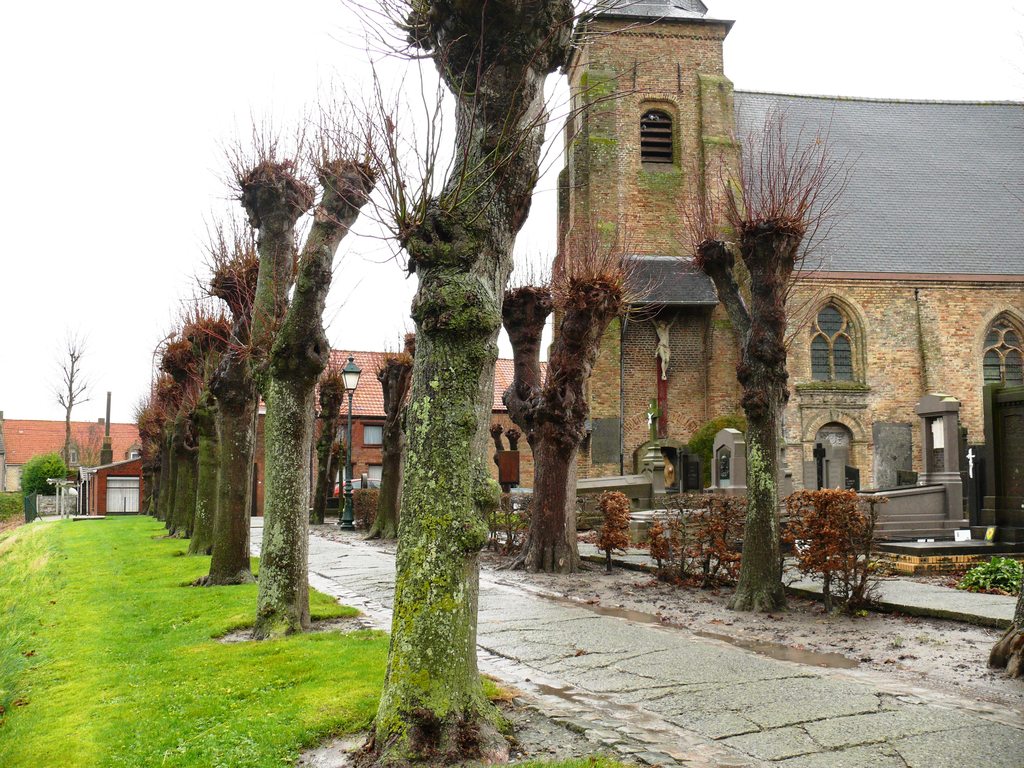 Kerkhof Avekapelle. Lijnaanplanting gekandelaarde linden.