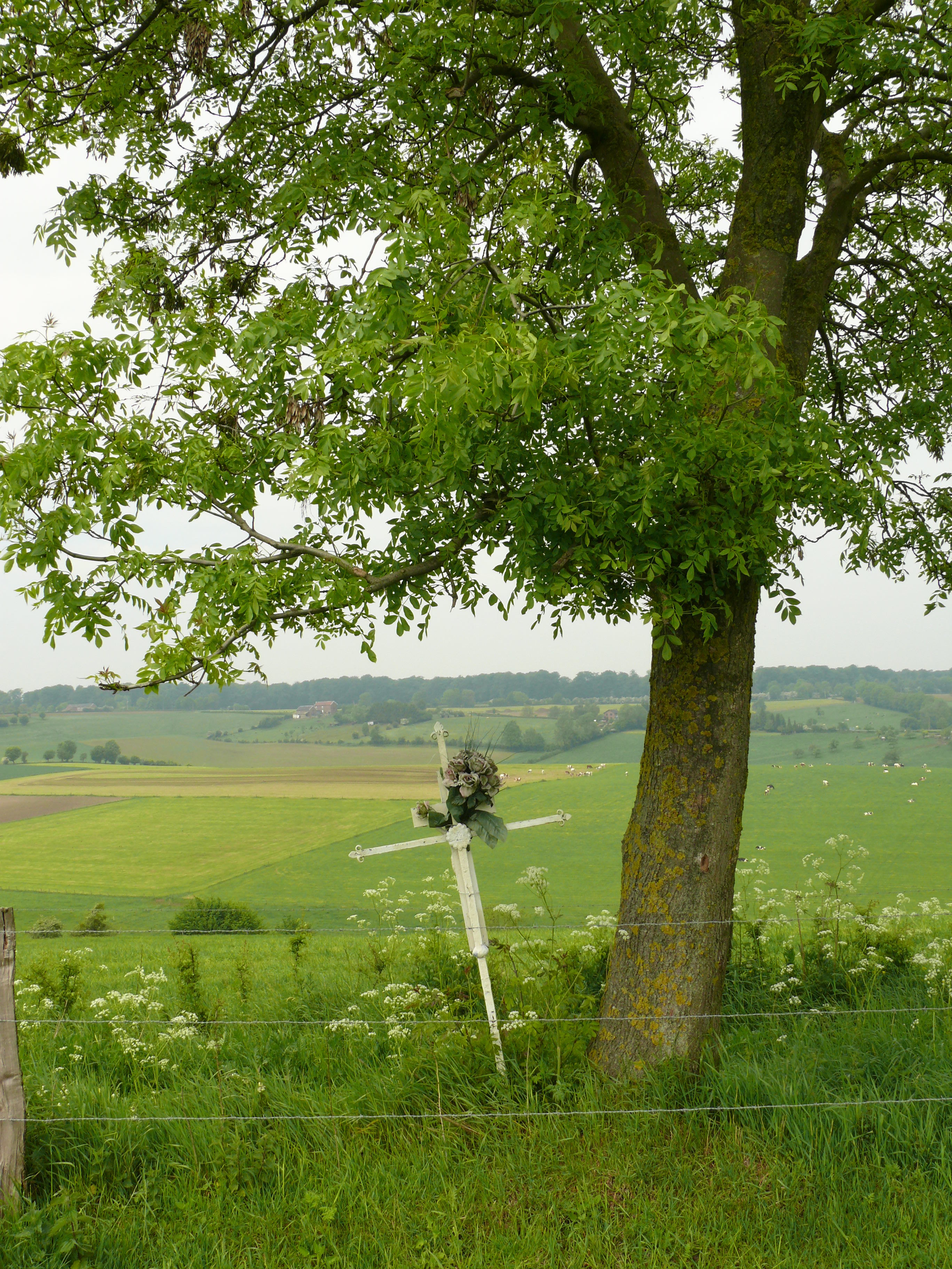 De afbeelding 'Voeren Remersdaal Reesberg es als hoekboom bij wegkruis' gemaakt door Van der Linden, Geert wordt ter beschikking gesteld door Agentschap Onroerend Erfgoed (AOE) onder de volgende voorwaarden: Modellicentie voor gratis hergebruik, Naamsvermelding 4.0 Internationaal.