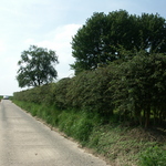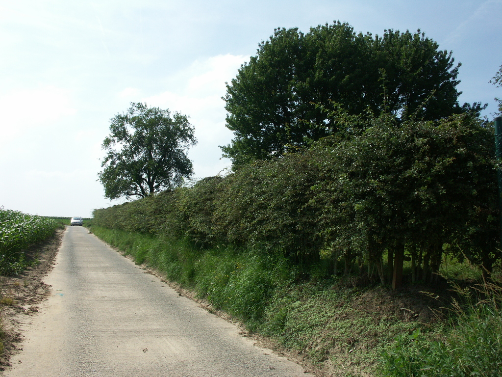 Zwalm Hundelgem Hundelgemsebaan 74 Afsluitingshaag van meidoorn en haagbeuk bij boomgaard