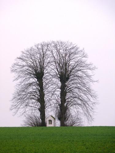 Kleienberg. Veldkapel twee gekandelaarde linden.