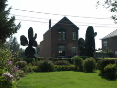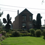 Buggenhout Houtenmolenstraat Afsluitingshaag met topiary (2)