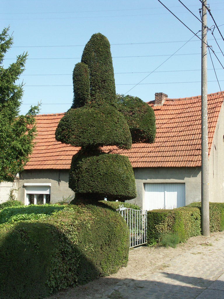 Buggenhout Houtenmolenstraat Afsluitingshaag met topiary (7)